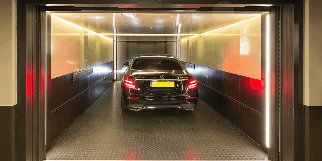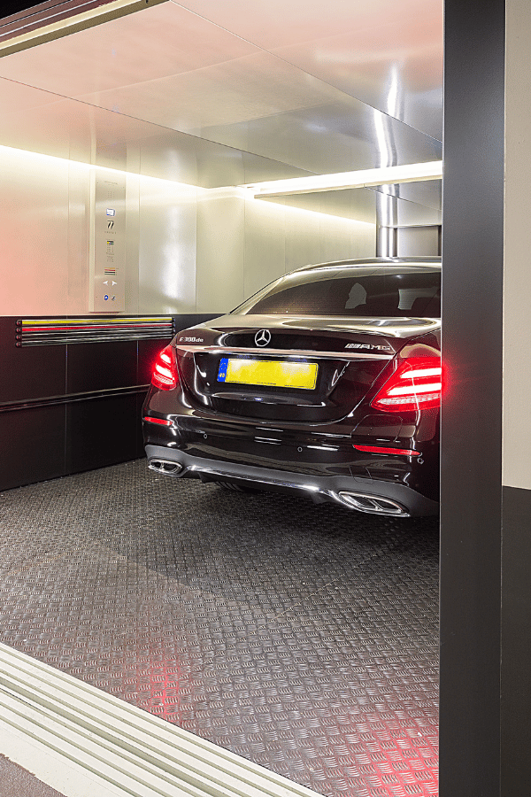 Conception et fabrication d’un ascenseur de grande capacité pour le transport de véhicules au centre de Londres.